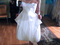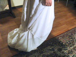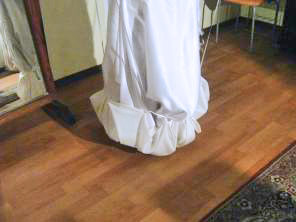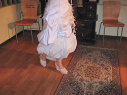 Comfortable and easy to wear under your wedding gown, the PicturePerfect Petticoat protects your gown from any dusty, muddy, or dry surface. Just draw up the ribbons. Your PicturePerfect Petticoat safely wraps around your wedding gown and lifts it off the ground.
